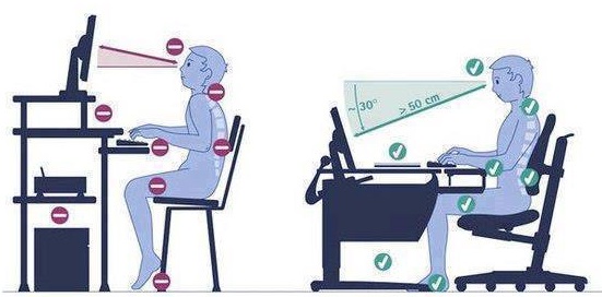 * מיקום שגוי של מסכים ומסמכים עלולים לגרום לישיבה בתנוחה לא נעימה, יש להתאים את מצג המסמכים והמסך כך שהצוואר נמצא במצב נייטרלי ונינוח.